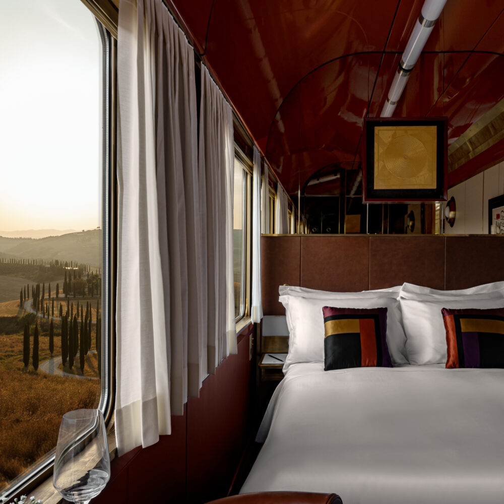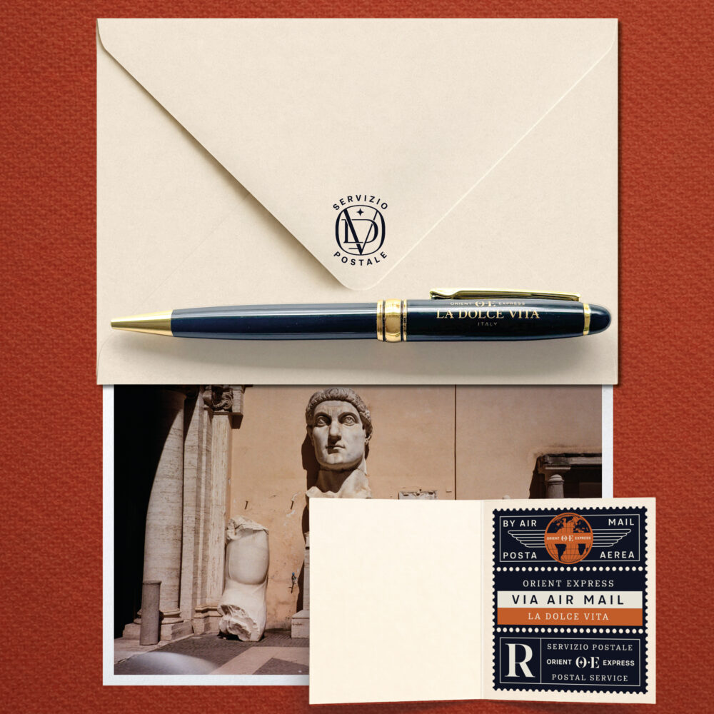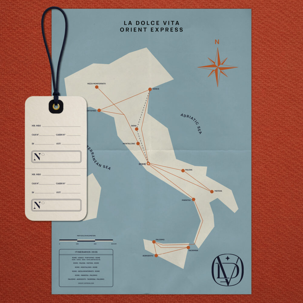 In designing the monogram for Orient Express La Dolce Vita, I drew on the rich Art Deco heritage associated with Orient Express, while infusing distinct touches of the 60s and 70s to reflect the train aesthetic designed by Milan-based decorating duo Dimore Studio.